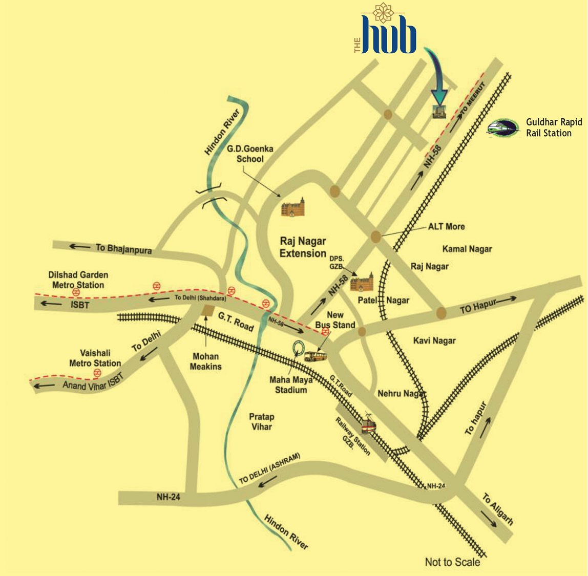 Hindon River Metro station approximately 15 minutes away.